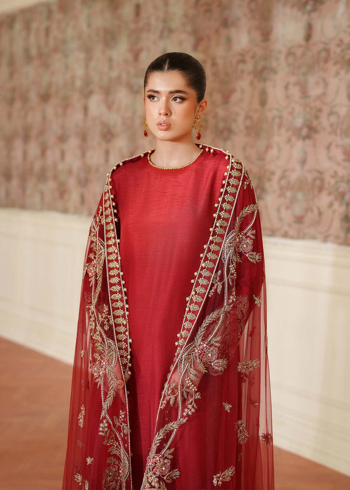 - Heavy Dupatta: Net dupatta with heavy embroidery and very heavy hand embellished work using sitara, baithki, pearls and beeds.